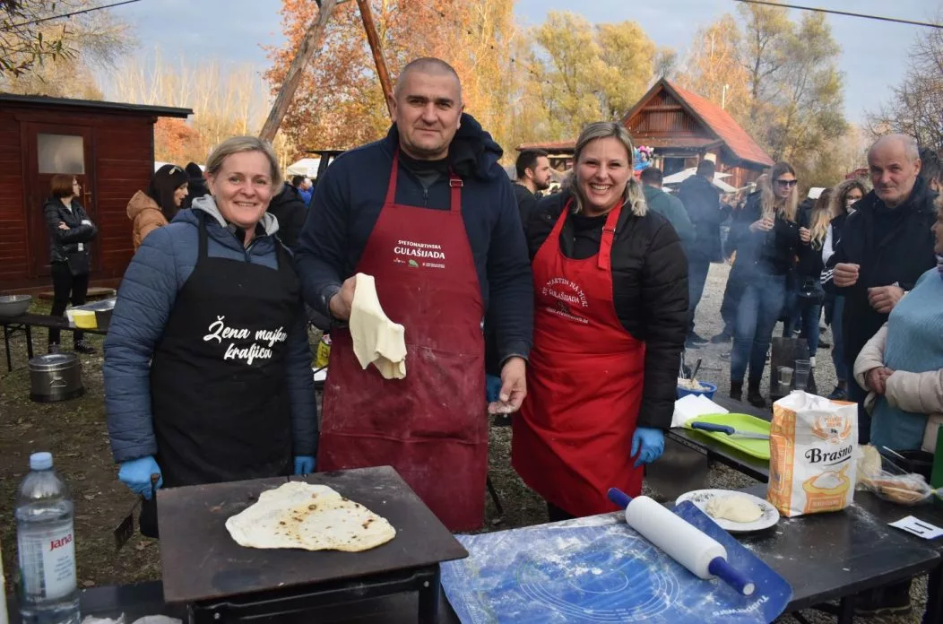 Oko jednog štanda napravio se ogroman red na Svetomartinskoj gulašijadi. Razlog su bili slasni mlinci koje je pekao Damir Bogdan, uz pomoć svojih fletnih pomagačica Valentine Sobočan Bogdan i Ivane Novak.