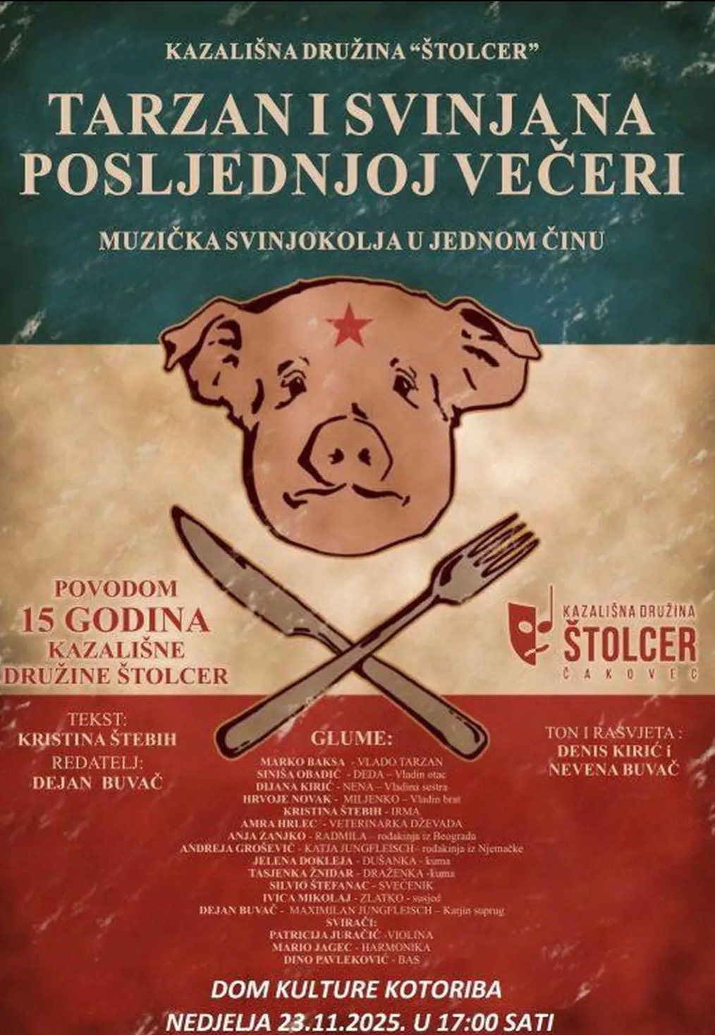U sklopu proslave, publici u Domu kulture u Kotoribi priređuju posebnu izvedbu svoje hit-predstave: “Tarzan i Svinja na posljednjoj večeri”.