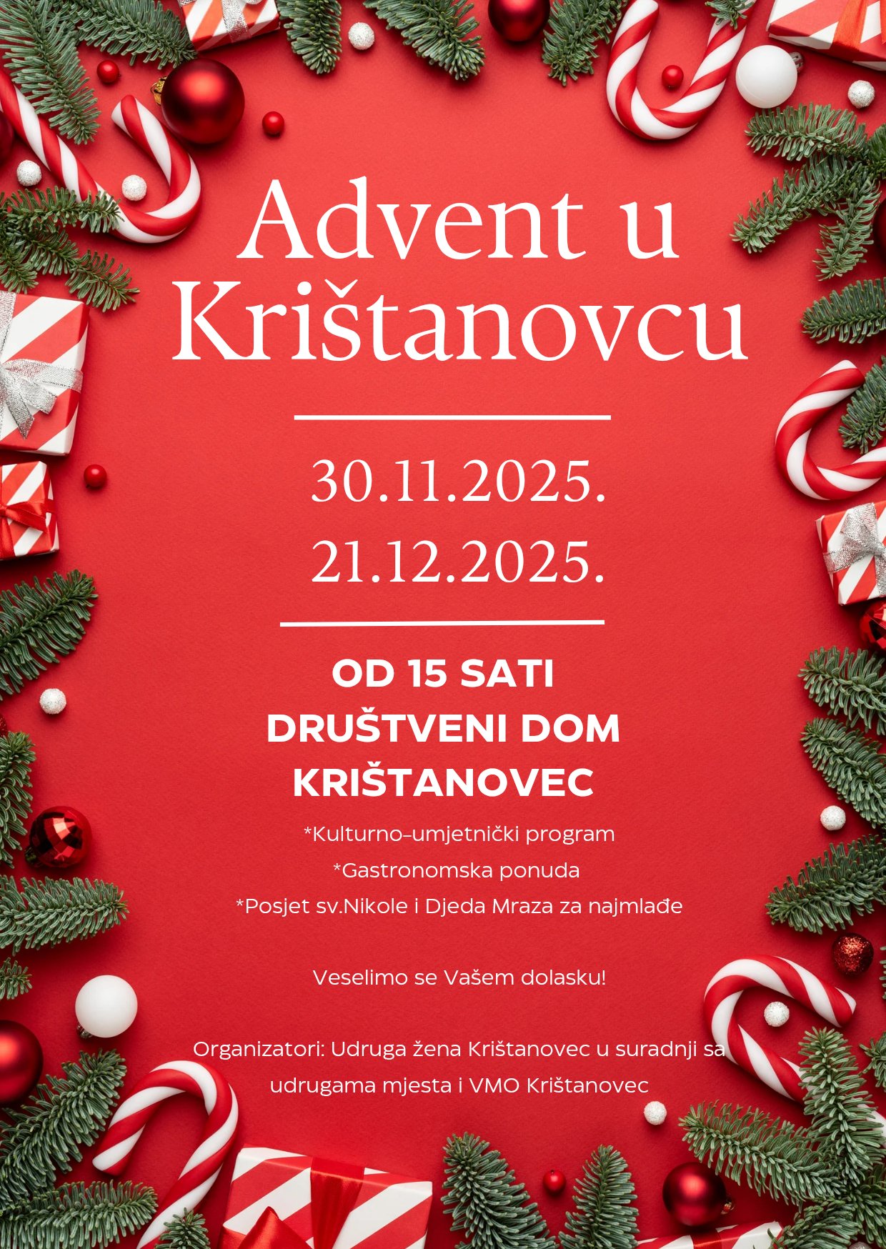 Advent u Krištanovcu donosi toplinu, zajedništvo i blagdanski duh – idealnu priliku da se okupimo i zajedno proslavimo najljepše doba godine.