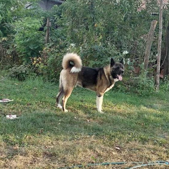 Devet mjeseci star muški pas u tipu akite, nalazi se u romskom naselju Piškorovec i traži dom.