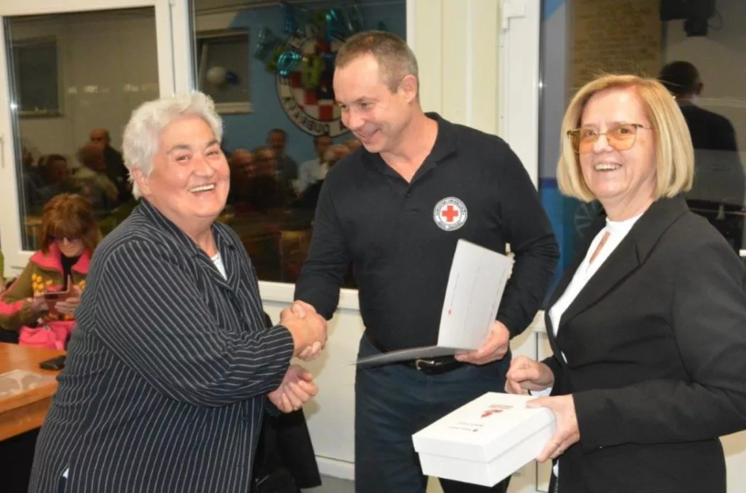 Na skupštini dobravskog Crvenog križa, koja je održana u petak, 21.11.2025., Marija Štefić je primila plaketu i prigodan poklon za 50 dobrovoljnih darivanja krvi