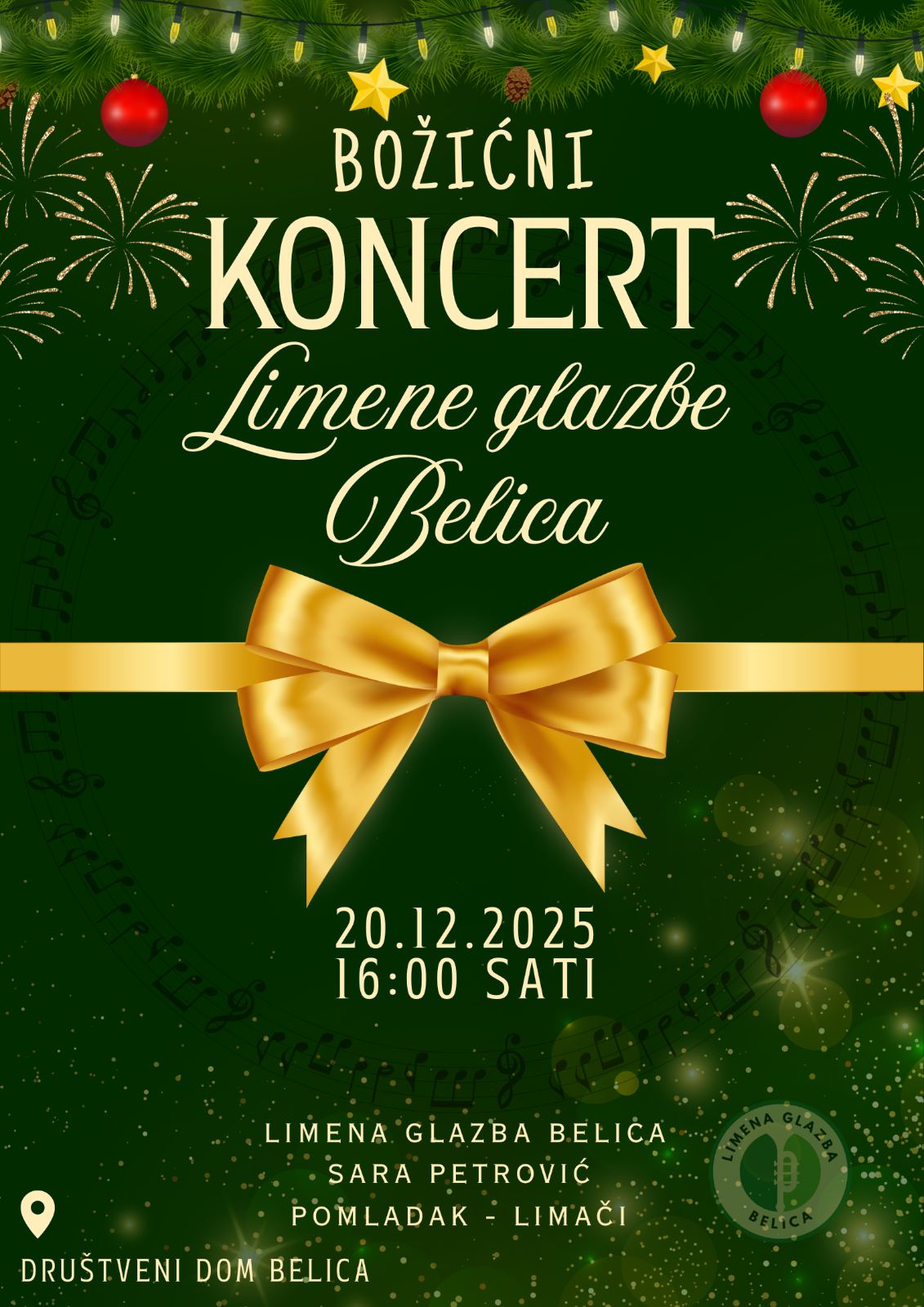 U Belici se ovih dana osjeća pravi blagdanski duh, a posebnu toplinu unijet će tradicionalni Božićni koncert Limene glazbe Belica, koji se održava 20. prosinca 2025. godine u 16:00 sati u Društvenom domu Belica