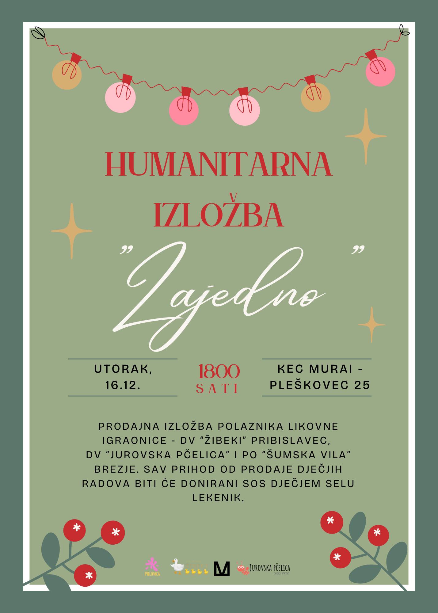 Humanitarna izložba Zajedno održat će se u utorak 16. prosinca u 18 sati u KEC-u Murai u Pleškovcu, a donosi posebnu priliku da se kroz dječju kreativnost podrži plemenit cilj.