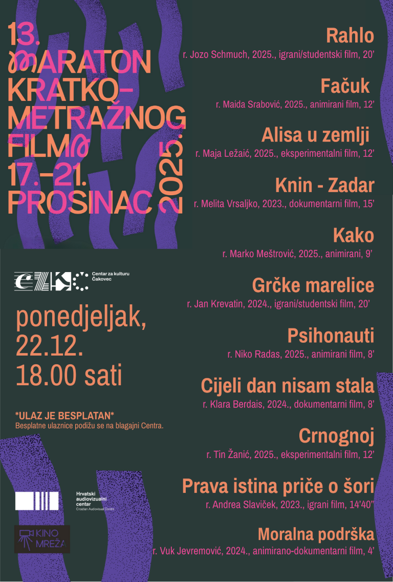 Više o filmovima pročitajte ovdje: https://czk-cakovec.hr/class/maraton-kratkometraznog-filma/