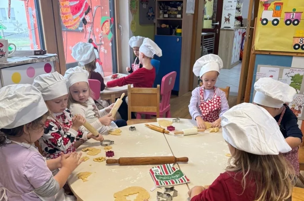 Prostorije vrtića nakratko su se pretvorile u malu kuhinju, u kojoj su veseli mali kuhari s puno entuzijazma i veselja prionuli poslu. Uz pomoć svojih odgojiteljica, djeca su mijesila tijesto, valjala ga, rezala kalupima u obliku zvjezdica, srca i božićnih drvaca te s velikim nestrpljenjem čekala da se keksići ispeku.