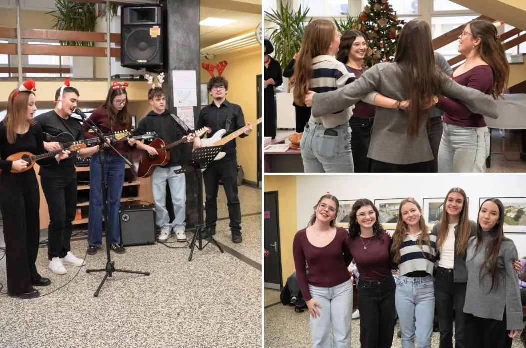 Bio je to pravi blagdanski ugođaj – žamor srednjoškolaca, u jednom dijelu učenice prodaju kolače i tople sendviče, neki se pozdravljaju, neki zaljubljeno gledaju, neki razmjenjuju poklone.