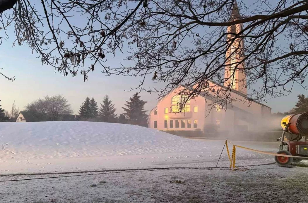Tijekom noći s ponedjeljka na utorak djelatnici Gradskog poduzeća EKOM pomoću uređaja za proizvodnju umjetnog snijega zasniježili su brežuljak na čakovečkom Jugu.