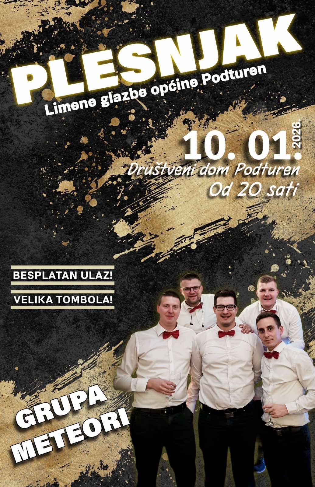 Plesnjak će se održati u subotu, 10. siječnja 2026. godine, s početkom u 20 sati, u prostoru Društvenog doma Podturen, koji će tom prigodom postati središte društvenog života općine.