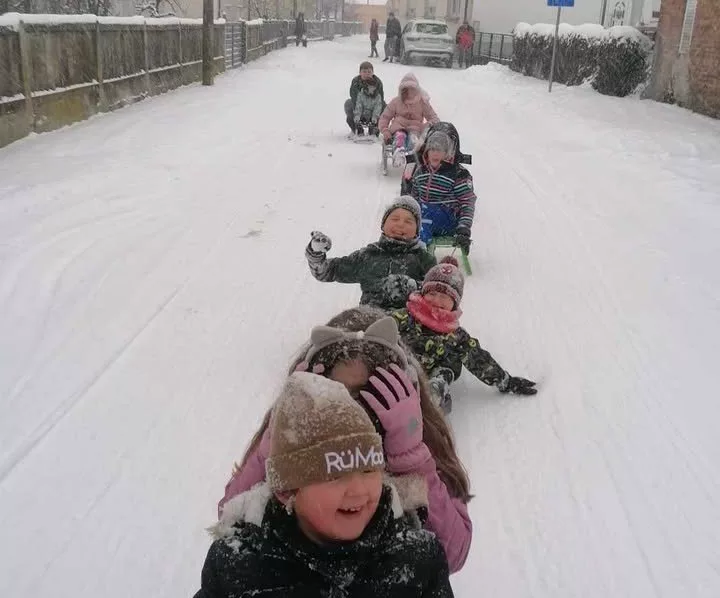 Poziv nije ostao bez odjeka. Djeca su u tren oka bila spremna, sanjke su se povezale u dugački “snježni vlak”, a Plinska ulica ispunila se smijehom, vriskom i uzbuđenjem. Quad je polako vukao sanjke, a mališani su uživali u vožnji kakva se ne doživljava svaki dan.