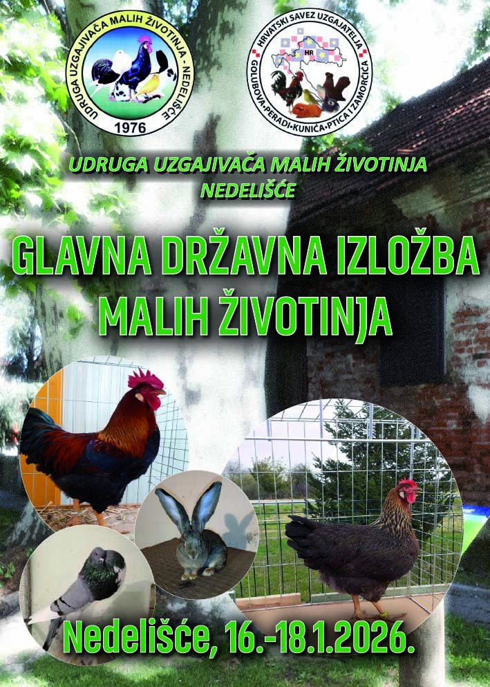 Od 16. do 18. siječnja 2026. godine u Nedelišću, u dvorani MESAP-a, održat će se Državna izložba malih životinja, ujedno i 49. Međunarodna izložba malih životinja, jedan od najznačajnijih uzgajivačkih događaja u regiji.