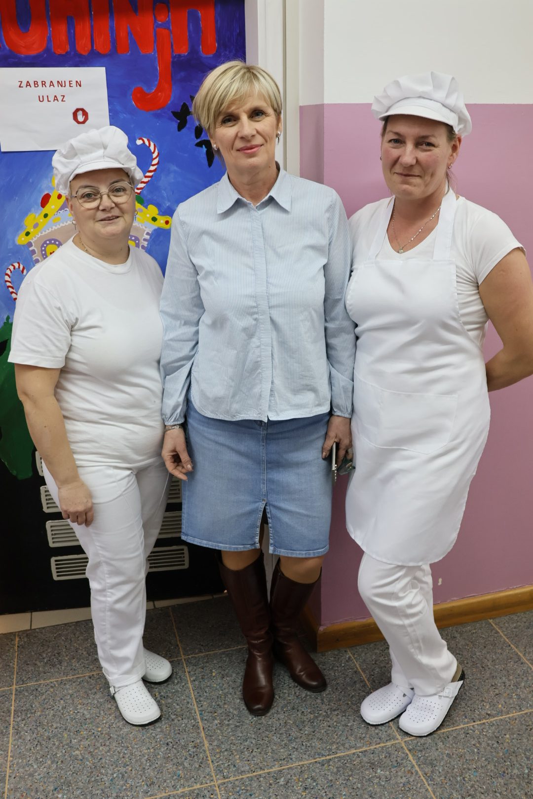 U kuhinji radi nekoliko vrijednih kuharica koje svakoga dana pripremaju užinu za čak 430 učenika u dvije smjene. Obrok mora biti spreman na vrijeme, ali i, ono važnije, mora biti ukusan! U poslu smo zatekli Biserku Rešetar iz Novog Sela na Dravi, pomoćnu radnicu u kuhinji, kuharicu Antoniju Zanjko iz istog mjesta te Božicu Mrazović iz Varaždina. Nedostajala je još Ana Benjak koja je bila u drugoj smjeni. Više u rubrici Kaj bumo jeli u najnovijem broju Lista Međimurje.