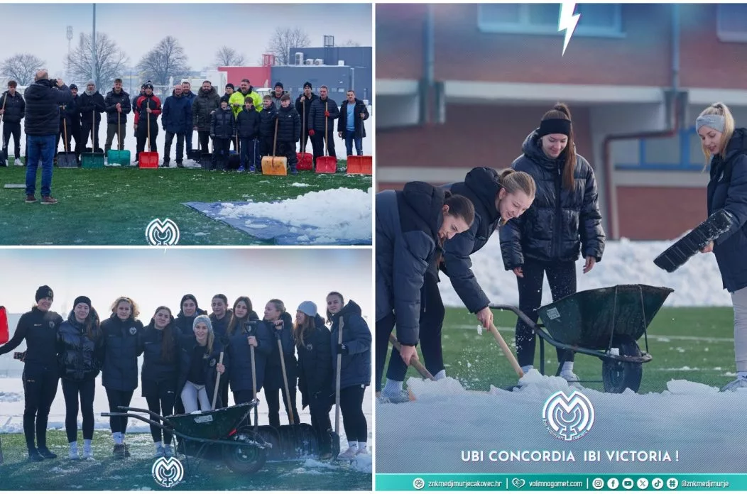 Nogometna akademija Međimurje proteklog je vikenda organizirala akciju čišćenja pomoćnog terena s umjetnom travom, koji je prethodnog tjedna bio zatrpan snijegom.