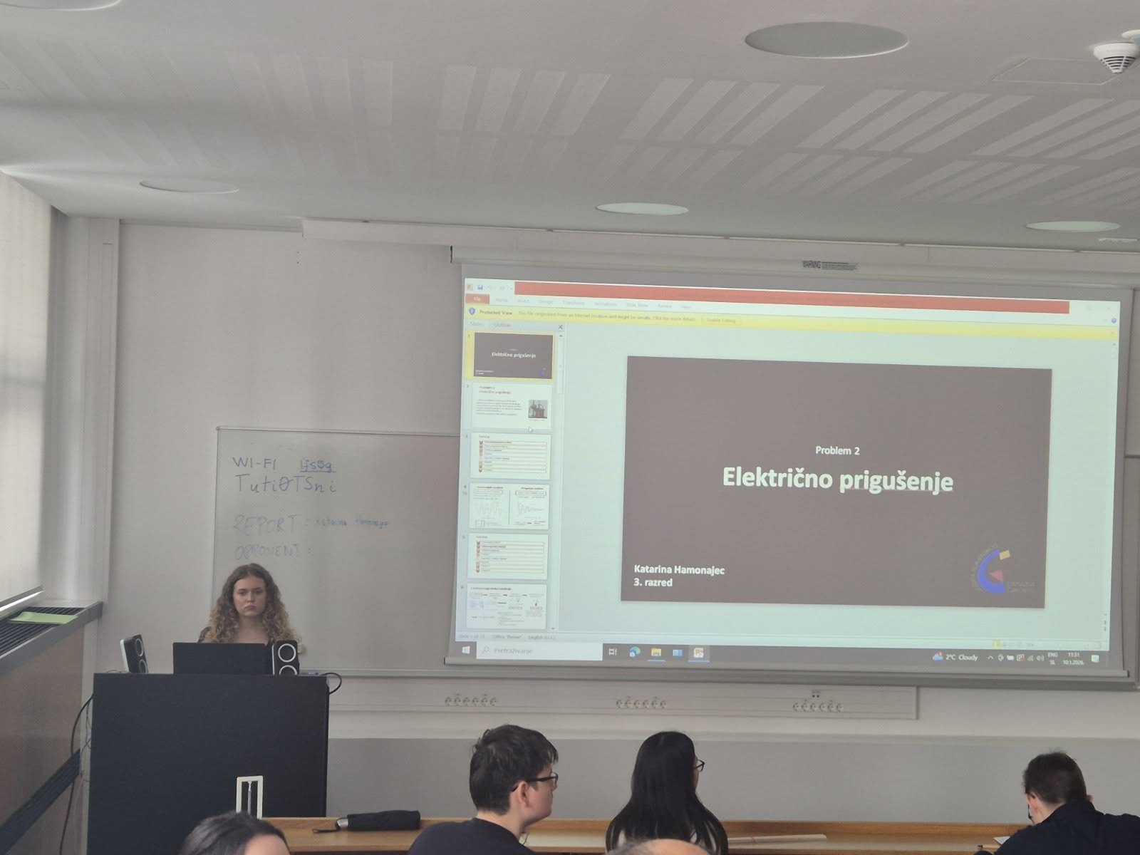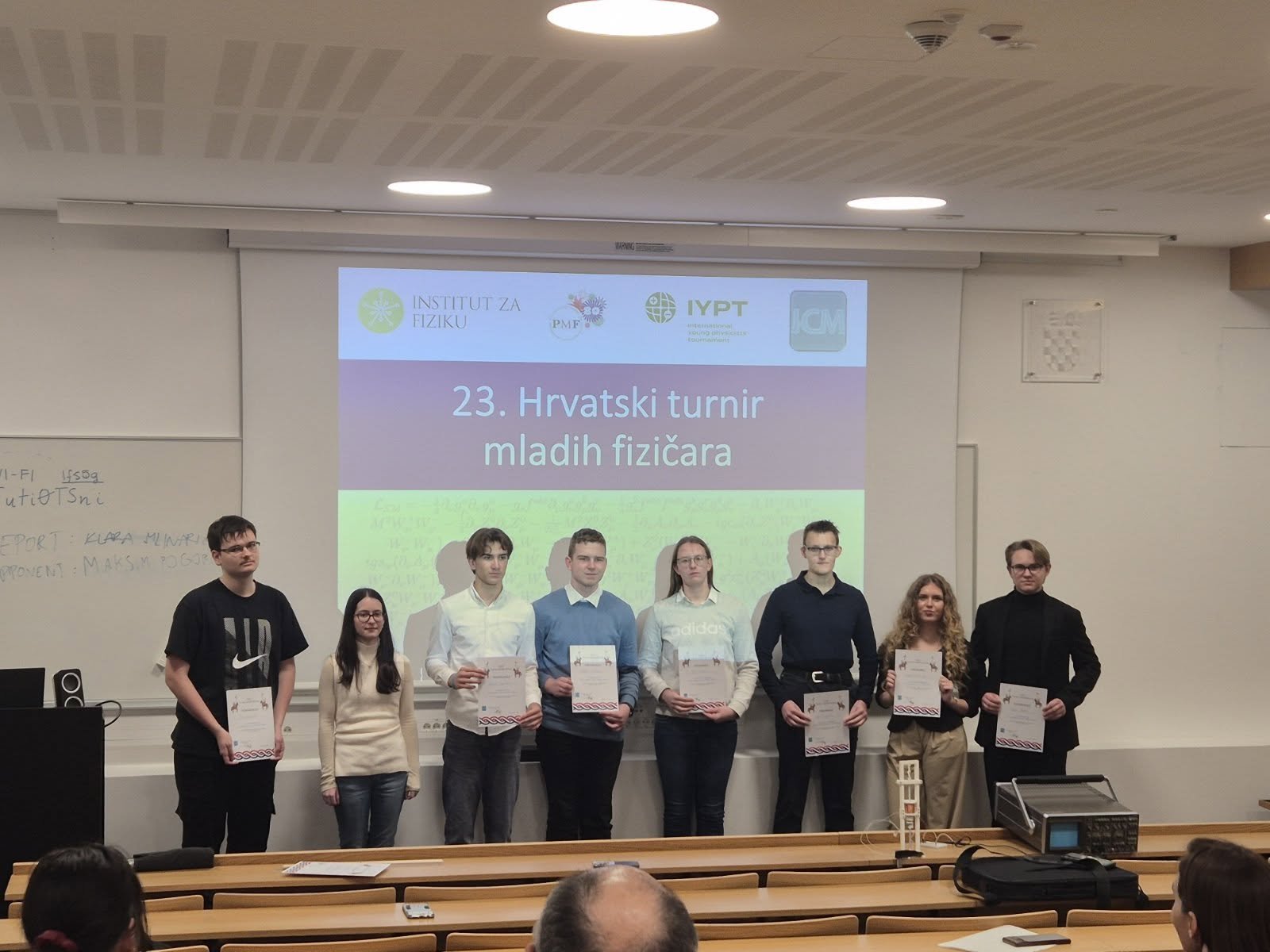 Učenici Katarina Hamonajec i Grgur Pavlic s mentoricom Melitom Sambolek osvojili su 3. i 4. mjesto na 23. Hrvatskom turniru mladih fizičara i plasirali se u uži izbor za IYPT u Švicarskoj