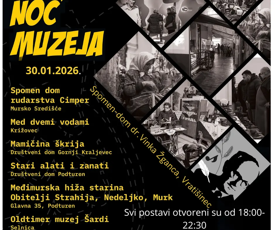 Spomen dom rudarstva „Cimper“ u Murskom Središću i ove se godine pridružuje manifestaciji Noć muzeja, koja se održava 21. put, a vrata posjetiteljima otvara u četvrtak, 30. siječnja, od 18:00 do 22:30.