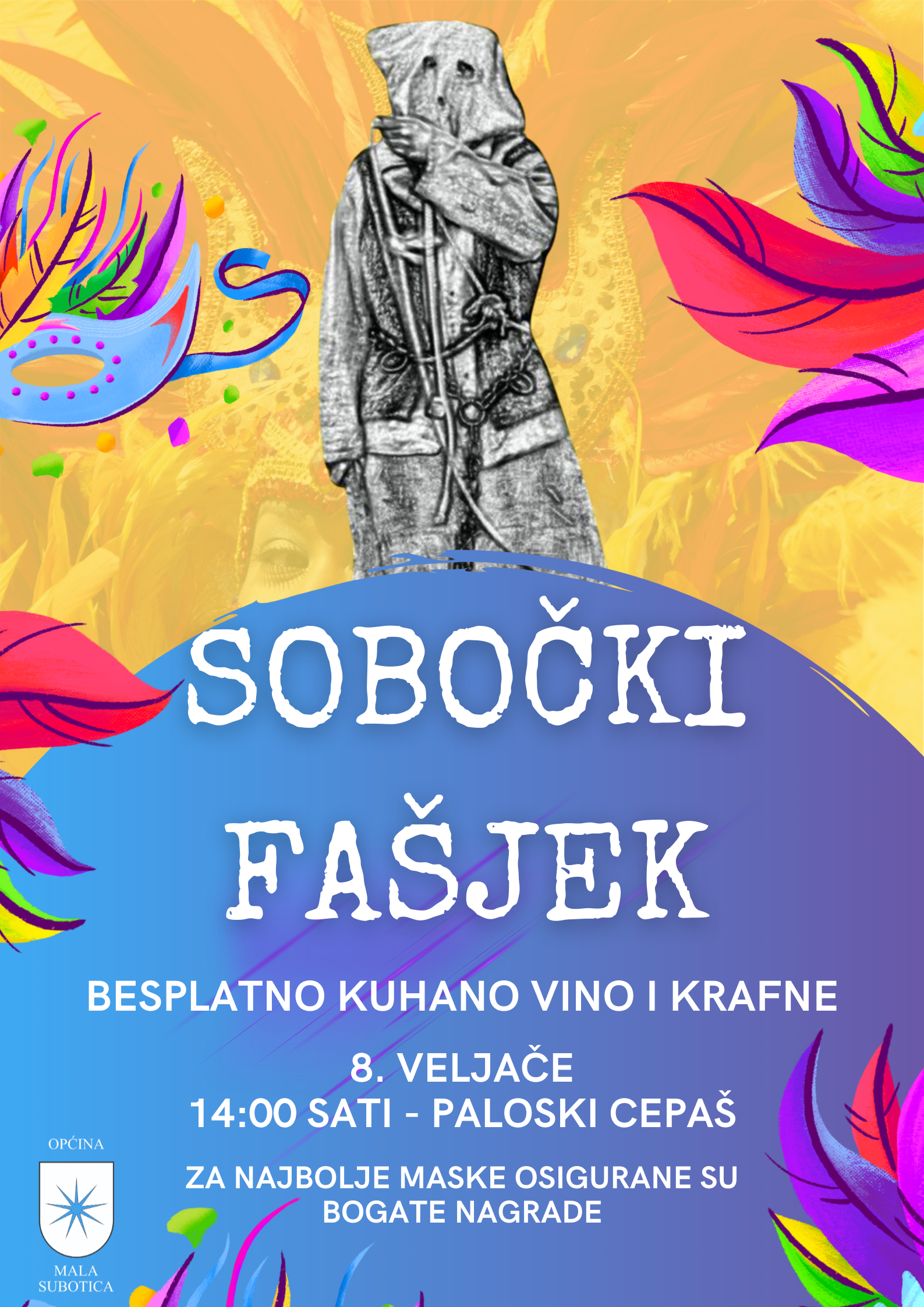 Povorku će pratiti glazba Puhačkog orkestra Općine Mala Subotica, a sudionici će proći do trga ispred Doma kulture Mala Subotica, gdje će se sve prijavljene maske moći predstaviti grupno ili pojedinačno na bini.