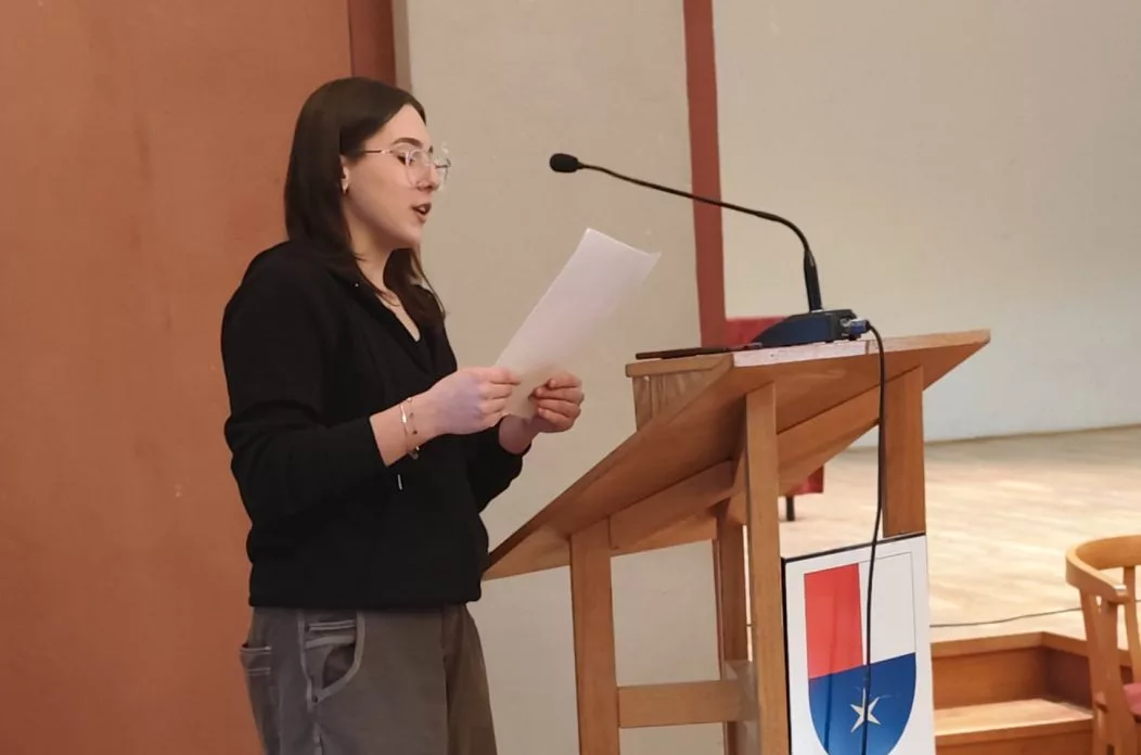 Nagrađena učenica Eva Šafarić emotivnom je izvedbom pobjedničkog rada „Mrvica imenom Mama“ na predstavljanju Zbornika Udruge Mlada pera u Čakovcu ganula publiku
