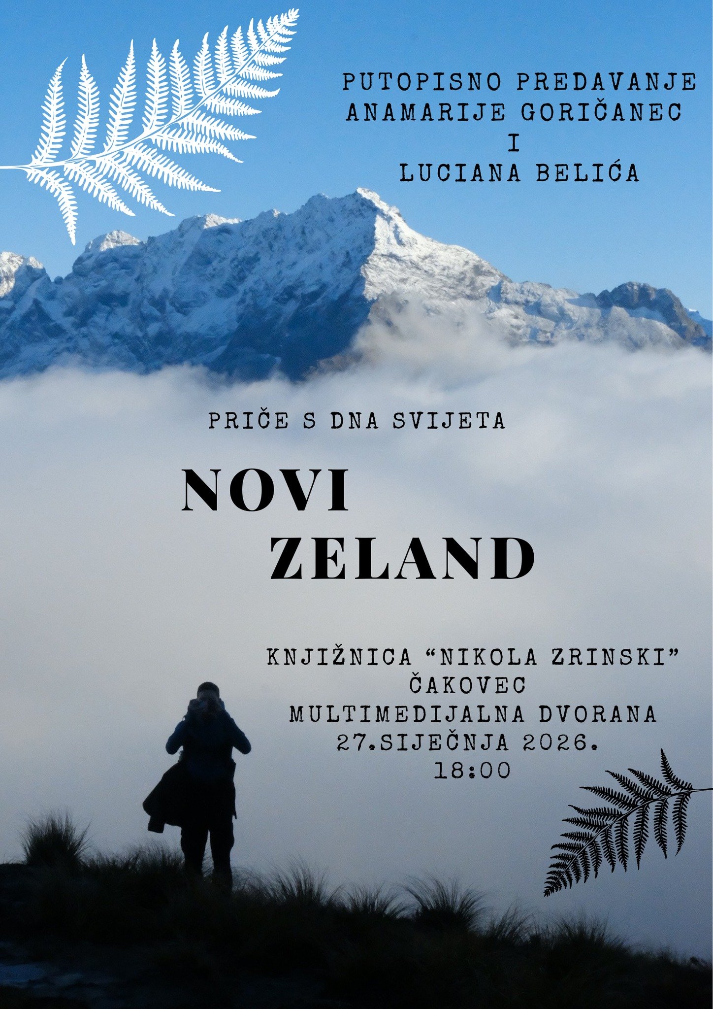 Knjižnica “Nikola Zrinski” Čakovec poziva sve zainteresirane na putopisno predavanje pod nazivom “Priče s dna svijeta – Novi Zeland”, koje će se održati u utorak, 27. siječnja 2026. godine u 18 sati u Multimedijalnoj dvorani knjižnice.