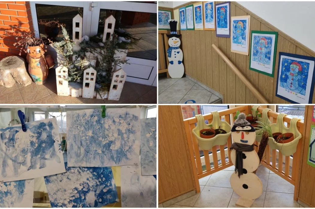 Radove na temu zimskih radosti fotografirali smo u zadnji čas, jer je upravo u tijeku “smjena”, tako da ambijent u vrtiću “preuzimaju” valentinovski ftičeki i ljubavni motivi.