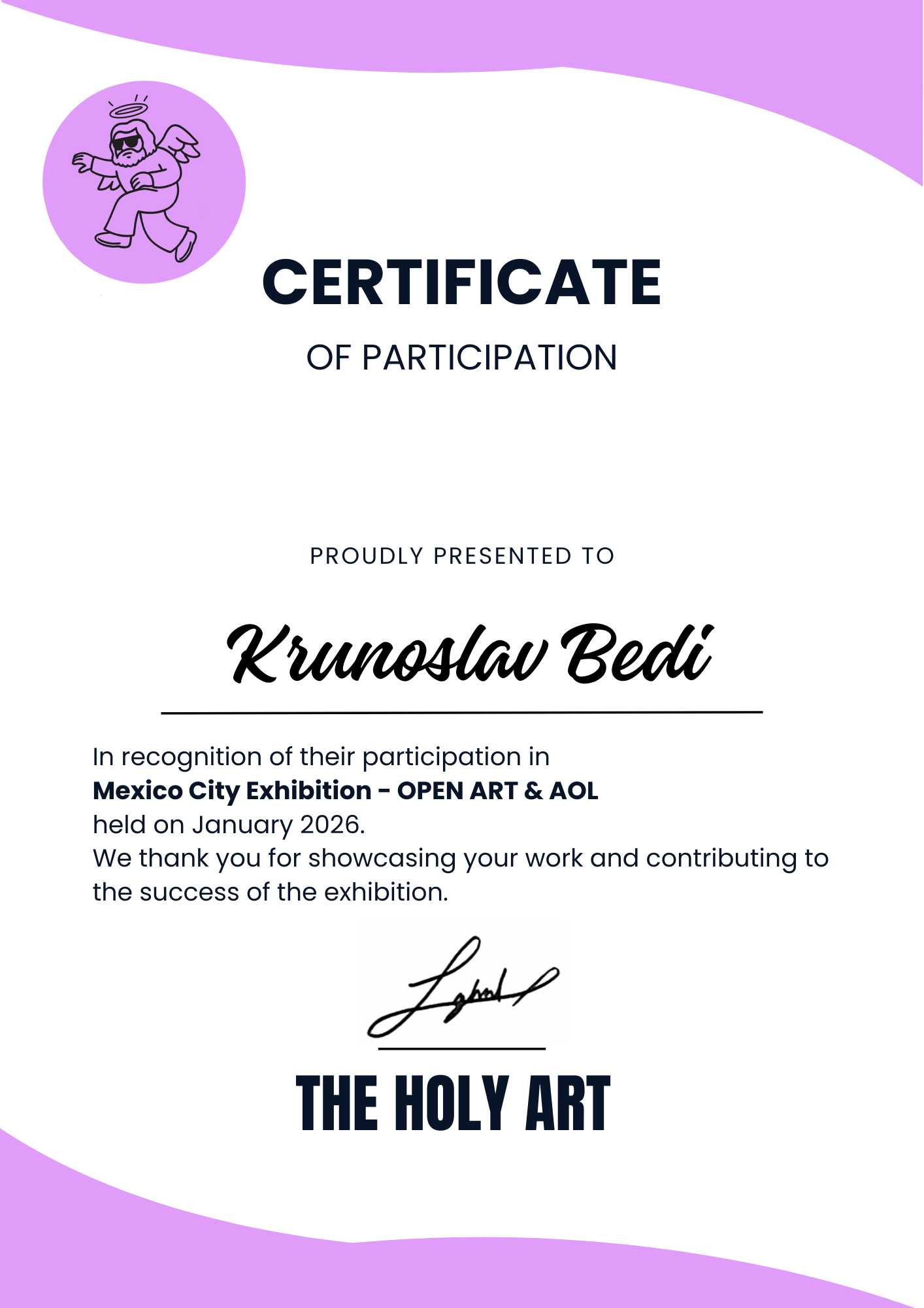 Dr. sc. Krunoslav Bedi etablirana je figura na međunarodnoj umjetničkoj sceni. Njegovi su radovi izlagani i nagrađivani u brojnim svjetskim metropolama, među kojima su Berlin, Amsterdam, Pariz, Madrid, Venecija, Barcelona, Milano, Monaco, Atena, Doncaster, London, Zürich, Tokio, Rim, Seoul i Ciudad de México. Njegovo digitalno djelo Unrequited Love uvršteno je među 40 najboljih radova na prestižnoj Berlin Contemporary Art nagradi 2025. godine, dok je na međunarodnoj izložbi ASSEMBLAGE u Budimpešti rad Sanjarenje / Daydreaming osvojio nagradu žirija.