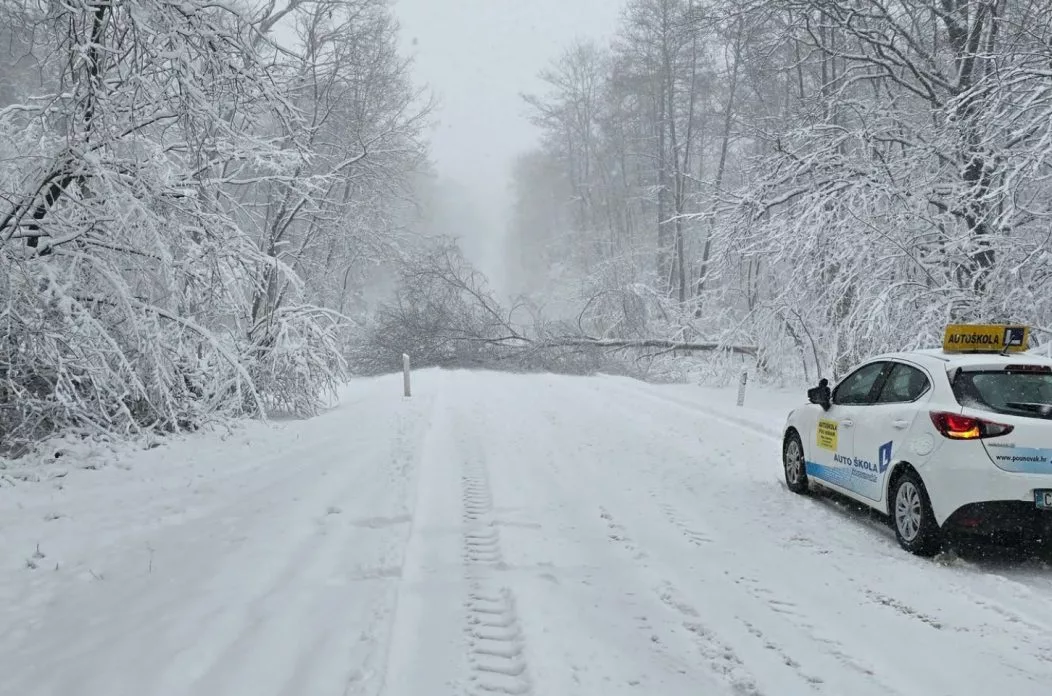 Izbjegavajte cestu Slakovec – Brezje jer je srušeno stablo potpuno blokiralo kolnik, a snježni uvjeti dodatno otežavaju promet.