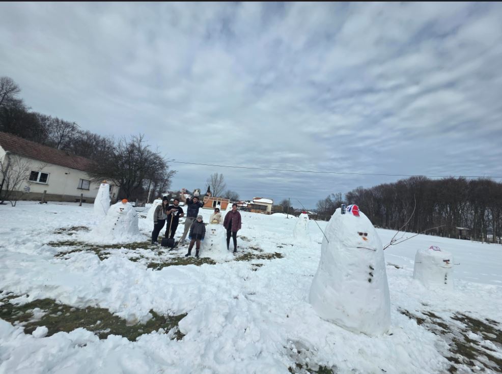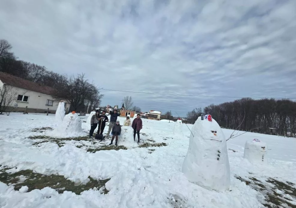 U stvaranju ove snježne družine sudjelovali su članovi obitelji Halabarec i Krznar, pretvorivši dvorište u pravu zimsku bajku.