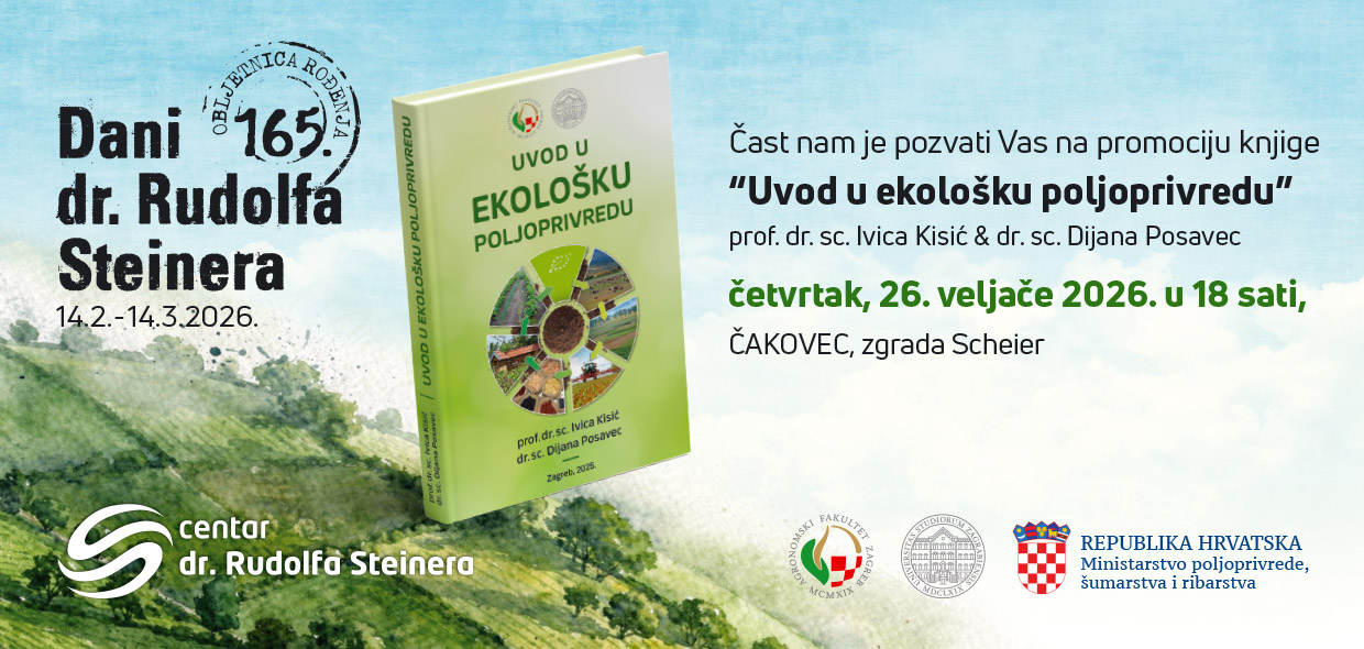 Povodom 165. obljetnice rođenja dr. Rudolfa Steinera u Čakovcu će se 26. veljače 2026. održati promocija knjige „Uvod u ekološku poljoprivredu“ autora prof. dr. sc. Ivice Kisića i dr. sc. Dijane Posavec
