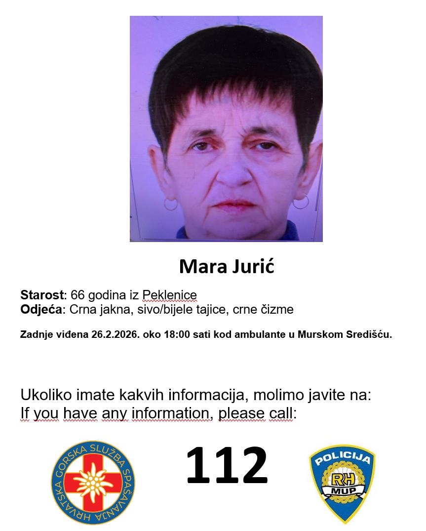 Potraga za nestalom osobom i dalje je u tijeku te se ulažu svi napori kako bi se pronašli tragovi koji bi doveli do pronalaska.