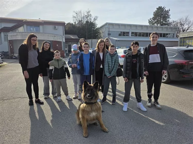 U dvorištu ih je dočekala belgijska ovčarka Loka sa svojim vodičem, a koja je specijalizirana za pronalazak opojne droge, dok su je djeca s oduševljenjem pozdravila.