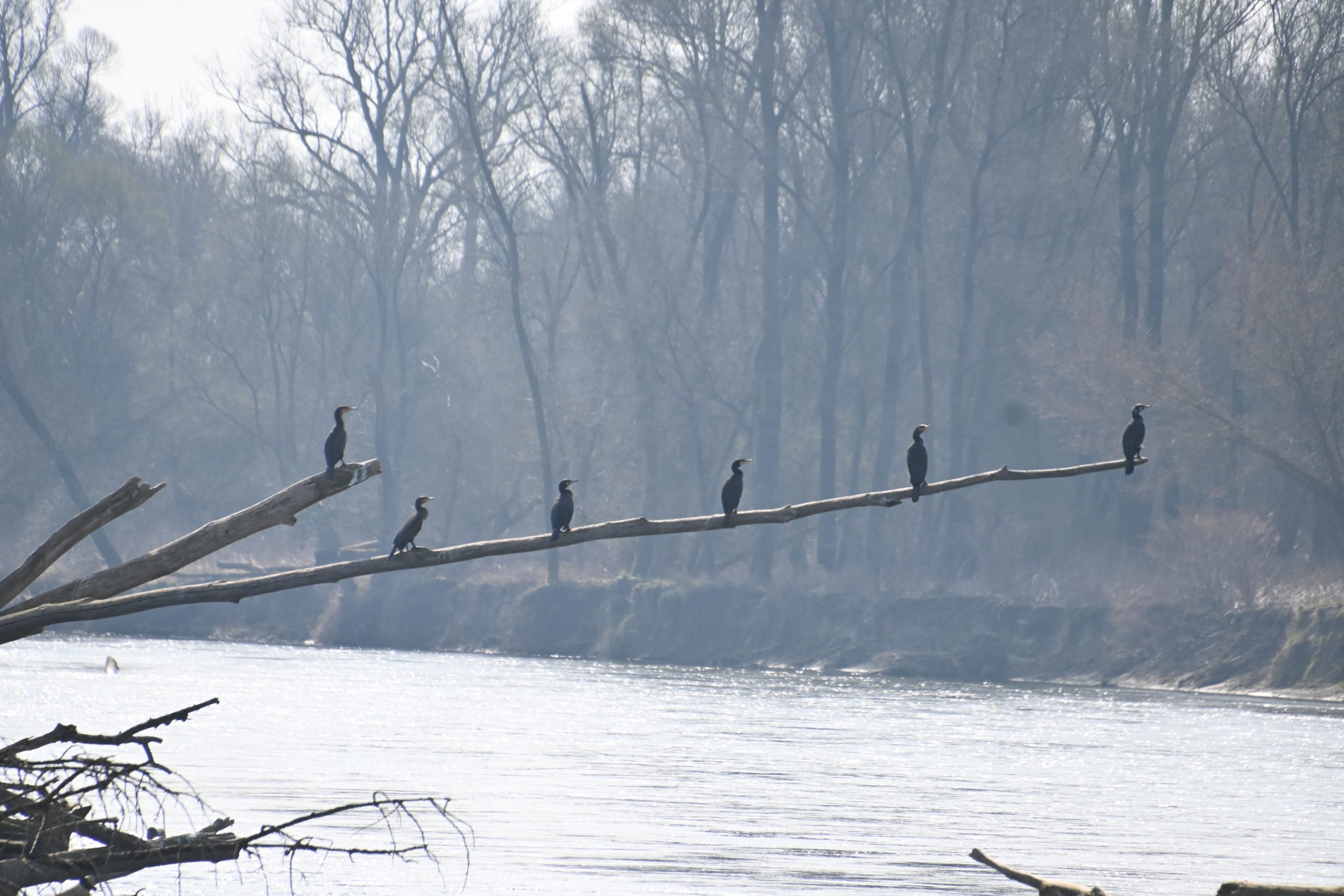 OBALNA STRAŽA NA RIJECI MURI Šest kormorana nadgleda površinu rijeke