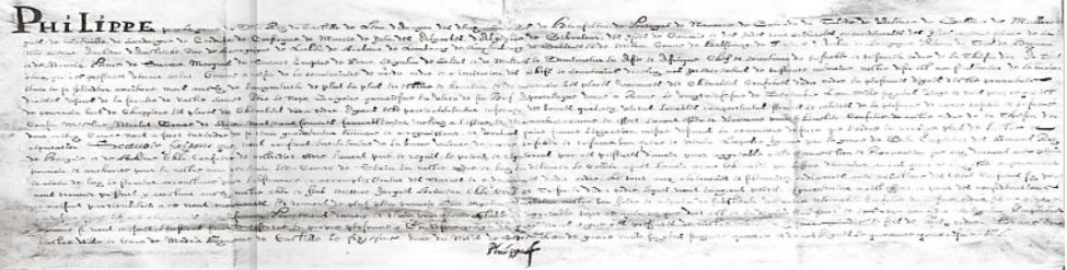 Dragi rođače. Kako bi proveo svoju odluku da Vas odlikujem lancem mog Reda zlatnog runa koju sam donio zbog Vaših dobrih osobina, služenja i zasluga, zbog zahvalnosti koju ste za to iskazali, nakon zrelog razmatranja i razloga koji su me na to naveli, dao sam nalog gospodinu Jacquesu Bruneau, vitezu, savjetniku i rizničaru ovog reda, da se s potvrdom o dodjeli koju sam izdao uputi k preuzvišenom, uzornom i moćnom knezu Leopoldu Ignazu po Božjoj milosti rimskom caru, kralju Ugarske i Češke, mom vrlo dragom i cijenjenom šogoru i nećaku, da Vas on u moje ime kao viteza i brata primi u moj red i preda Vam lanac reda, sve to – što ga osim toga molim – s uobičajenim ceremonijama i proslavama, o kojima će Vas rizničar obavijestiti. Tako ćete sve što će Vam moj vrlo dragi i cijenjeni šogor i nećak, u moje ime izjaviti, primiti i doživjeti kao od mene samog i za Vas će to vrijediti jednako kao da bih ja to osobno izrekao i učinio. U međuvremenu, dragi rođače, neka Vas Bog uzme pod svoju svetu zaštitu.