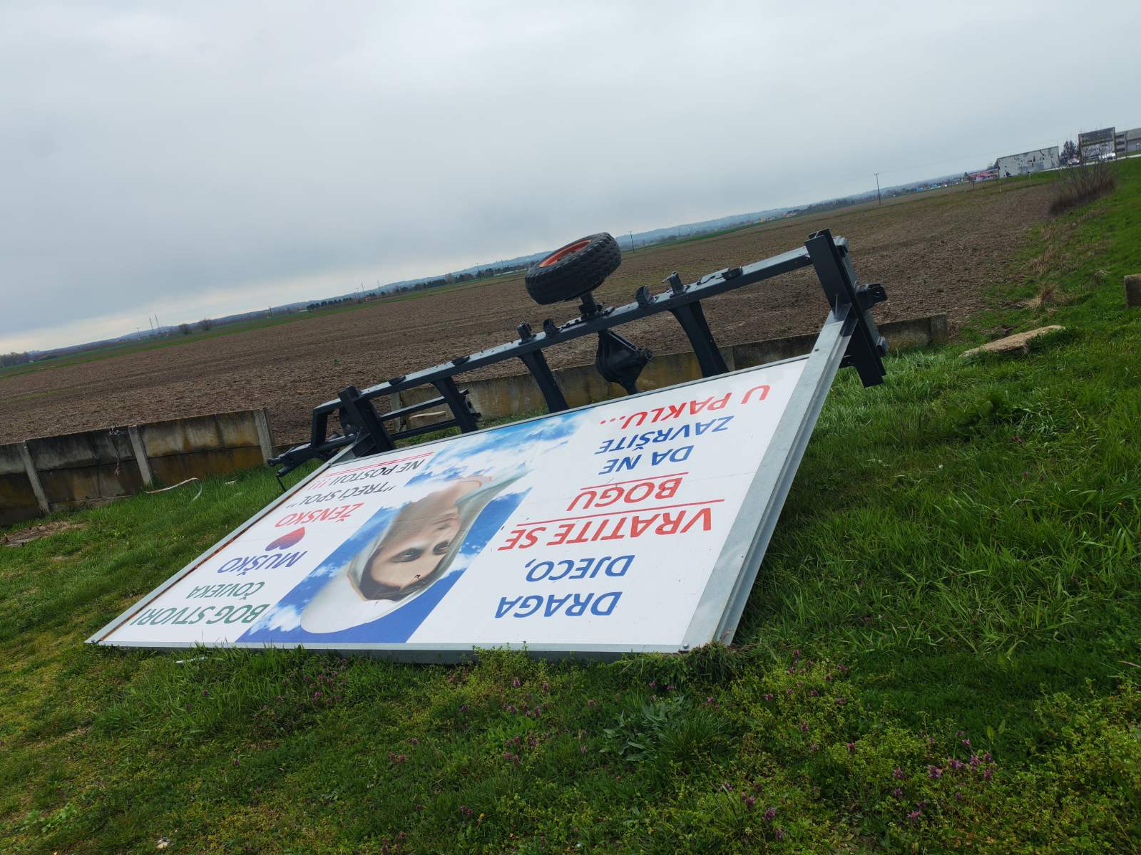 Srušen plakat još je jedan podsjetnik koliko vremenske neprilike mogu brzo stvoriti opasne situacije u prometu i svakodnevnom životu.