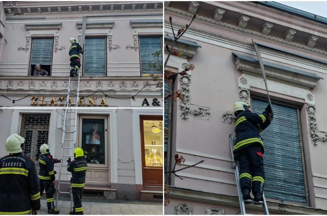Pripadnici JVP Čakovec izašli su na teren nakon dojave o limu koji je visio s pročelja jedne zgrade i prijetio padom.