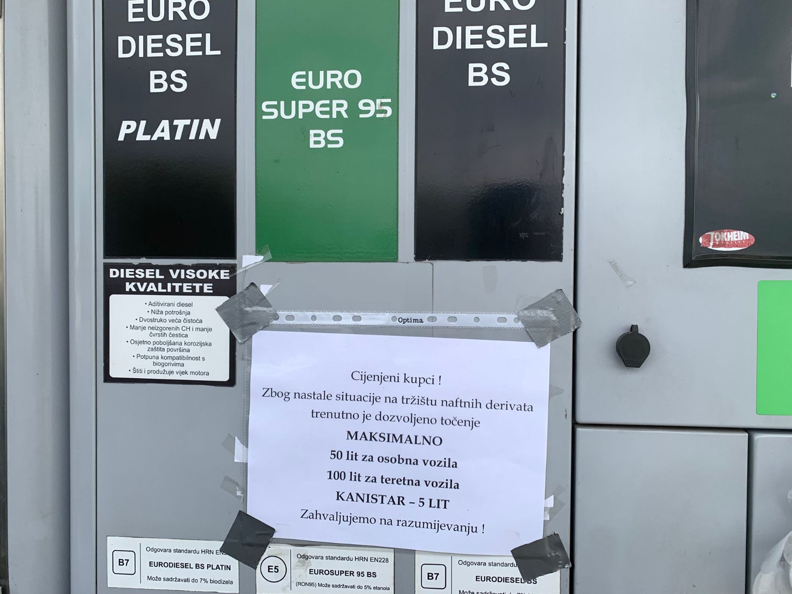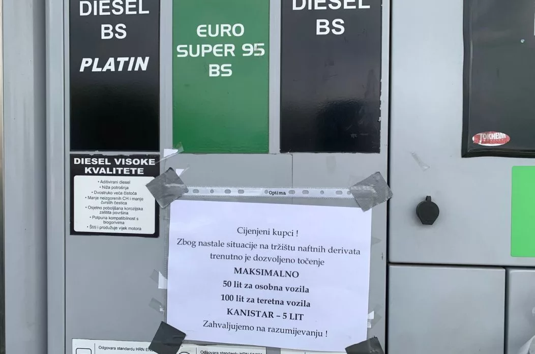 Kako stoji u obavijesti, zbog nastale situacije na tržištu naftnih derivata trenutno je dopušteno ograničeno točenje goriva.