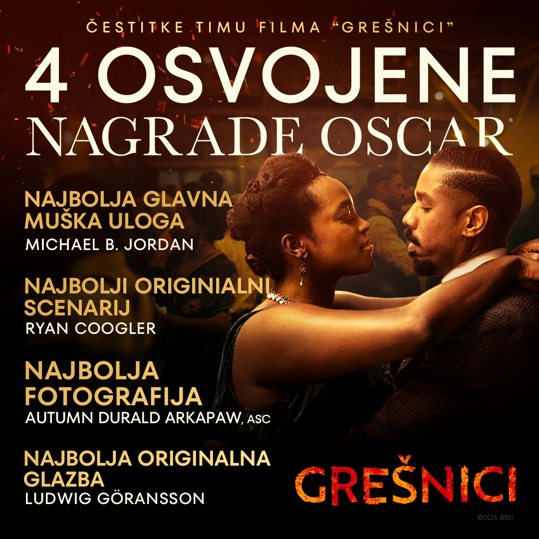 Radnja ovog jedinstvenog filmskog ostvarenja odvija se 1932. godine u Mississippi Deltu, u vrijeme dubokih društvenih i rasnih podjela. U središtu priče su identični blizanci Elijah Smoke i Elias Stack Moore, koje tumači Michael B. Jordan. Oni se vraćaju u rodni grad s nadom da otvore juke joint — glazbeni klub koji bi trebao postati utočište zajednice. Međutim, njihovu viziju ubrzo prekida misteriozna i nadnaravna prijetnja — sile koje kombiniraju horor vampira s teškim temama iz stvarne prošlosti. ”Sinners” nije tipični horor — riječ je o spoju supernaturalnog, povijesne drame, južnjačke gotike i glazbenih elemenata. Film ujedno istražuje teme kao što su identitet, trauma, grijeh i kulturno naslijeđe, posebno afroameričke blues tradicije koja je simbolično utkana u sam narativ. Na ovogodišnjem Oscar natjecanju Sinners je nominiran u ključnim kategorijama za: Najbolji film, Najboljeg redatelja (Ryan Coogler), Najboljeg glavnog glumca (Michael B. Jordan), brojne glumačke i tehničke kategorije poput fotografije, vizualnih efekata, originalne glazbe, kostima i montaže. Na 98. dodjeli nagrada Oscar®, Sinners je osvojio četiri nagrade Akademije: Najbolji film, Najbolja fotografija, Najbolja glavna muška uloga, Najbolja originalna glazba.