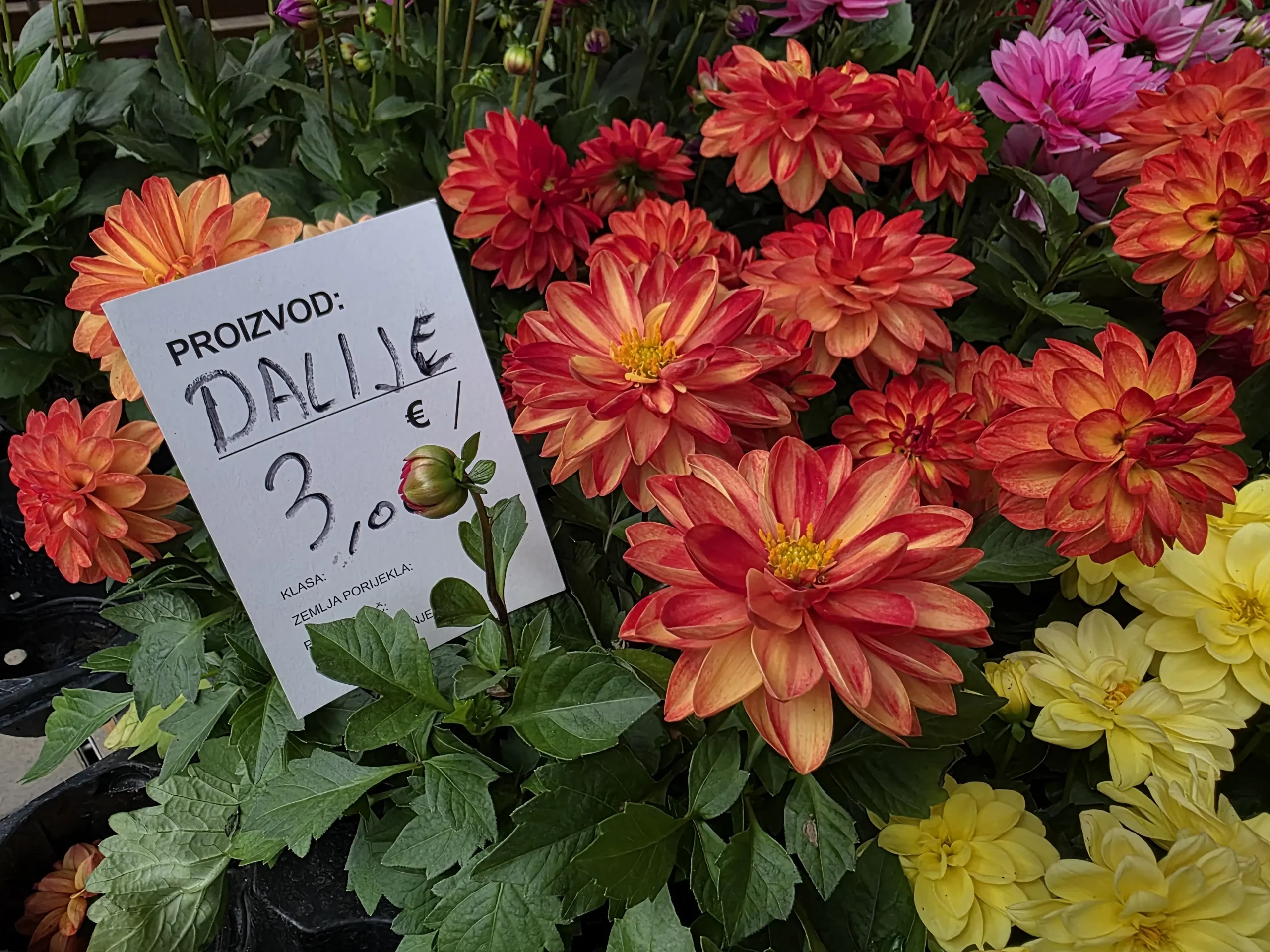 Među bogatom ponudom najviše su se isticale dalije, koje su se prodavale po cijeni od 3 eura i svojim bojama unosile živost u pomalo sivo jutro.