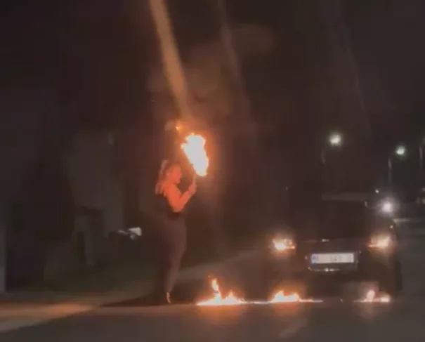 Sudeći prema snimci, gdje muškarac snima ženu koja pali asfalt i maše bakljom, najvjerojatnije se radi o snimanju sadržaja za društvene mreže.