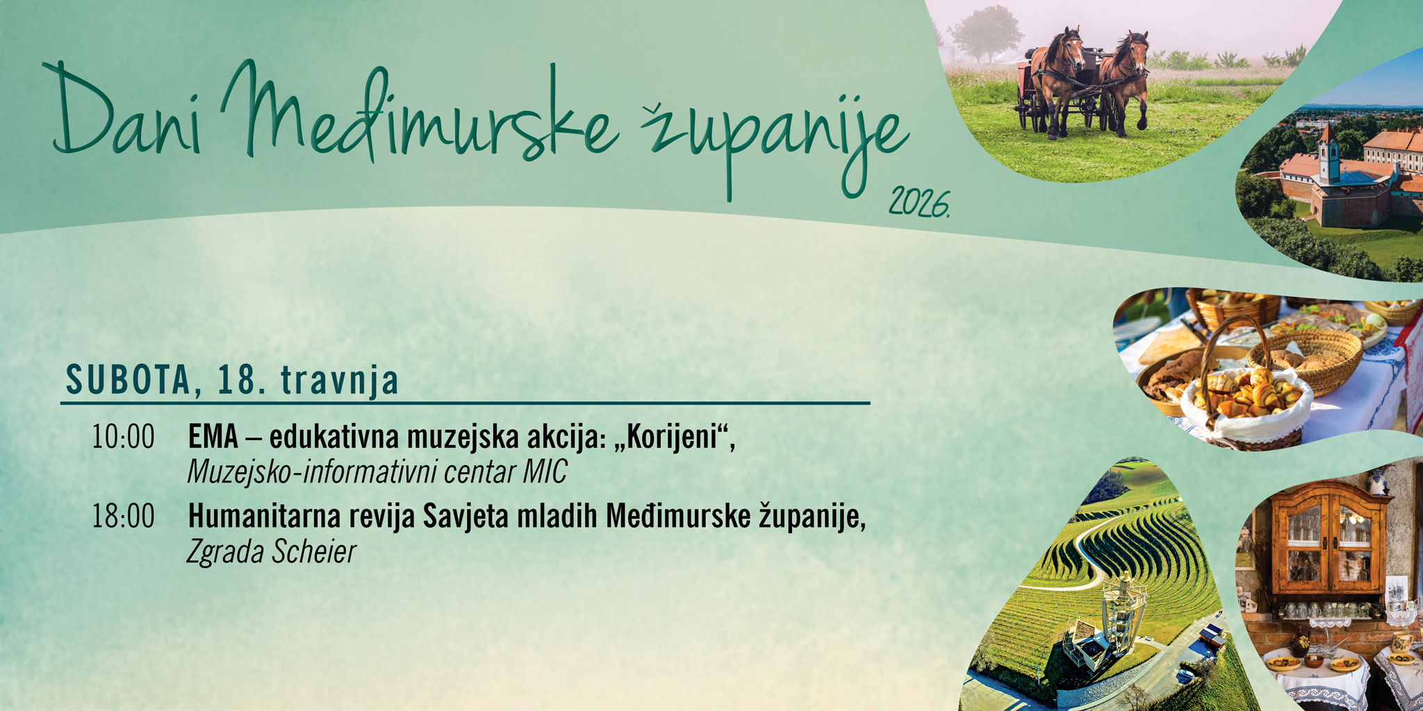 Dani Međimurske županije nastavljaju se u subotu, 18. travnja, bogatim programom koji povezuje edukaciju, kulturu i humanitarno djelovanje u Čakovcu i palači Zrinskih