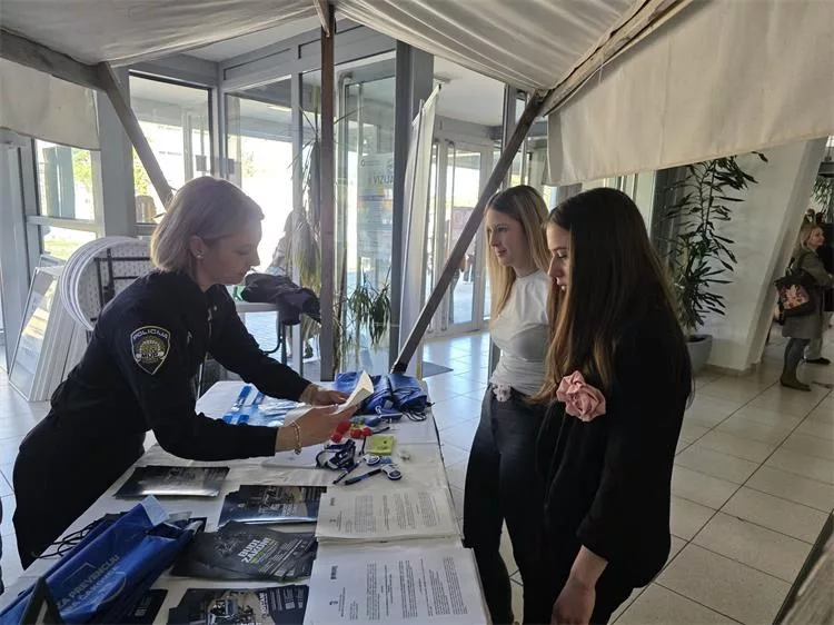 Na informativnom punktu međimurske policije predstavljeni su Natječaj za upis polaznika/polaznica u Program srednjoškolskog obrazovanja odraslih za zanimanje policajac/policajka u 2025./2026. godini i Natječaj za upis učenika u III. razred Policijske škole “Josip Jović” za stjecanje strukovne kvalifikacije za zanimanje policajac/policajka u 2025./2026. godini te su posjetitelji upoznati s važnom informacijom kako i ove godine mogu podnijeti prijavu putem sustava e-Građani