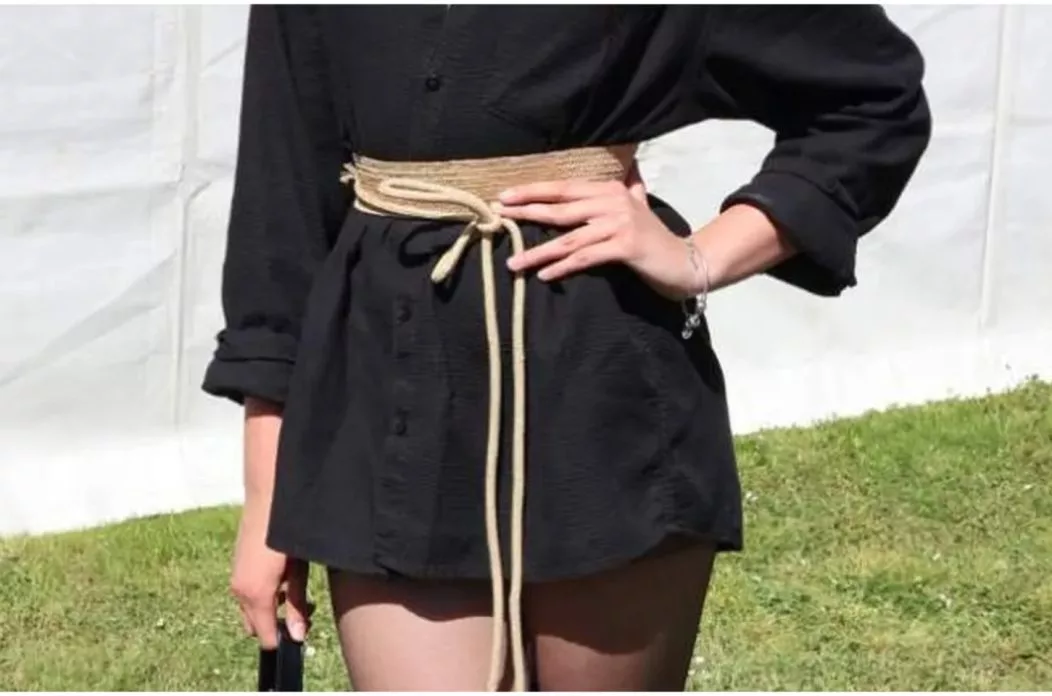 Visoke crne čizme kombinirala je s crnom haljinom-bluzom i torbicom u istoj nijansi, dok je cijelu kombinaciju podigla smeđim kožnim remenom na vezanje. Nenametljivo, ali precizno pogođeno.