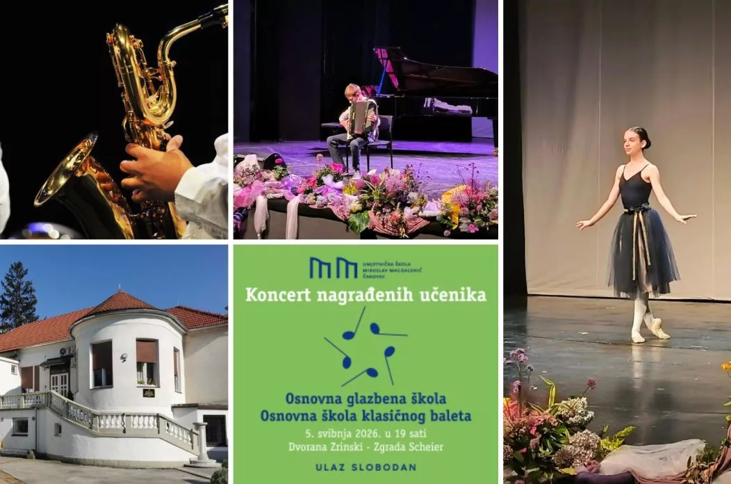 Učenici Umjetničke škole Miroslav Magdalenić Čakovec, koji su svojim talentom i predanim radom ostvarili zapažene uspjehe na natjecanjima, predstavit će se publici na Koncertu nagrađenih učenika koji će se održati u ponedjeljak, 5. svibnja 2026. godine u 19 sati u Dvorani Zrinski – Zgrada Scheier.
