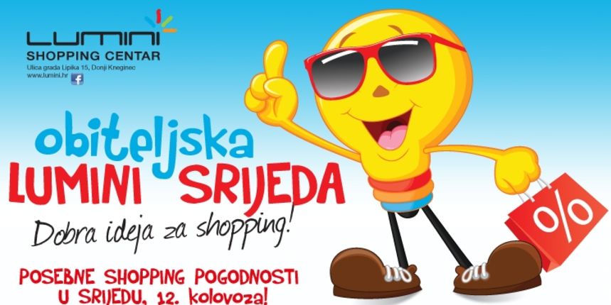 Druga srijeda u mjesecu uvijek je – Obiteljska Lumini srijeda! Uhvatite još jedan val vrtoglavo niskih cijena u srijedu 12. kolovoza i uživajte sa cijelom obitelji u posebnim shopping pogodnostima