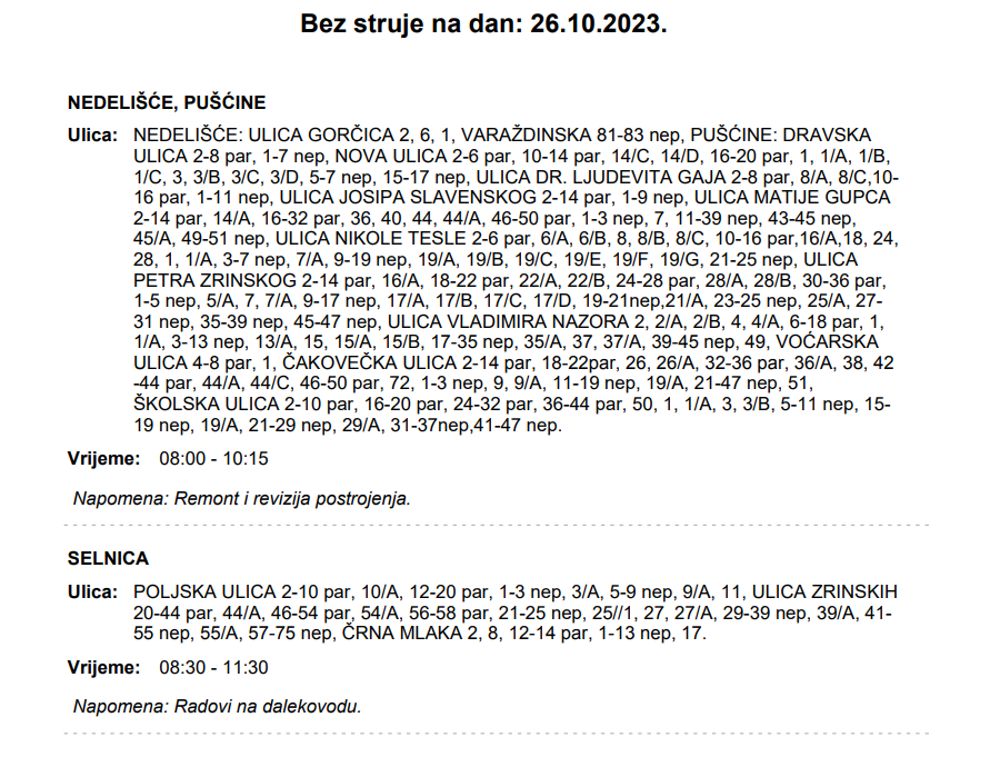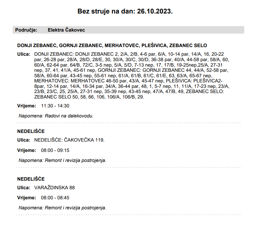Evo gdje sve sutra neće biti struje