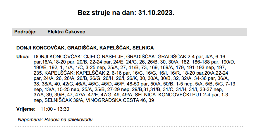 - Cijenjenim kupcima električne energije zahvaljujemo na razumijevanju - kažu iz Elektre Čakovec