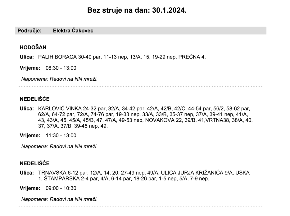 ELEKTRA ČAKOVEC Evo gdje i kada u Hodošanu i Nedelišću neće biti struje