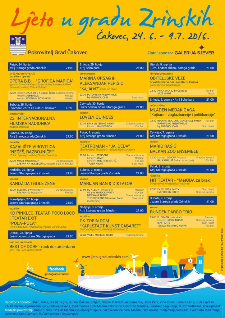 Tradicija organiziranja kulturno-zabavnih programa tijekom lipnja i srpnja u Čakovcu je pod nazivom Čakovečko ljeto počela još osamdesetih godina prošlog stoljeća. Posljednjih dvadesetak organizira se pod imenom ‘Ljeto u gradu Zrinskih’, manifestacija je postala jedna od ljetnih prepoznatljivosti grada. Zahvaljujući bogatom i raznolikom programu, tako će zasigurno biti i ove godine.