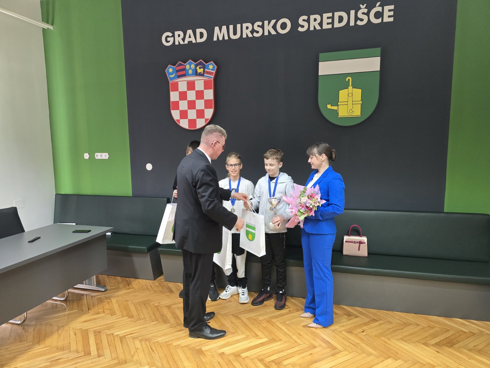 Njihov uspjeh nije prošao nezapaženo – u znak priznanja za trud, zalaganje i sjajan rezultat, gradonačelnik Dražen Srpak organizirao je prijem za učenike petih razreda Adiana Božića, Jakova Bezeka i Lovru Bobičanca te njihovu mentoricu Ružicu Pahor.