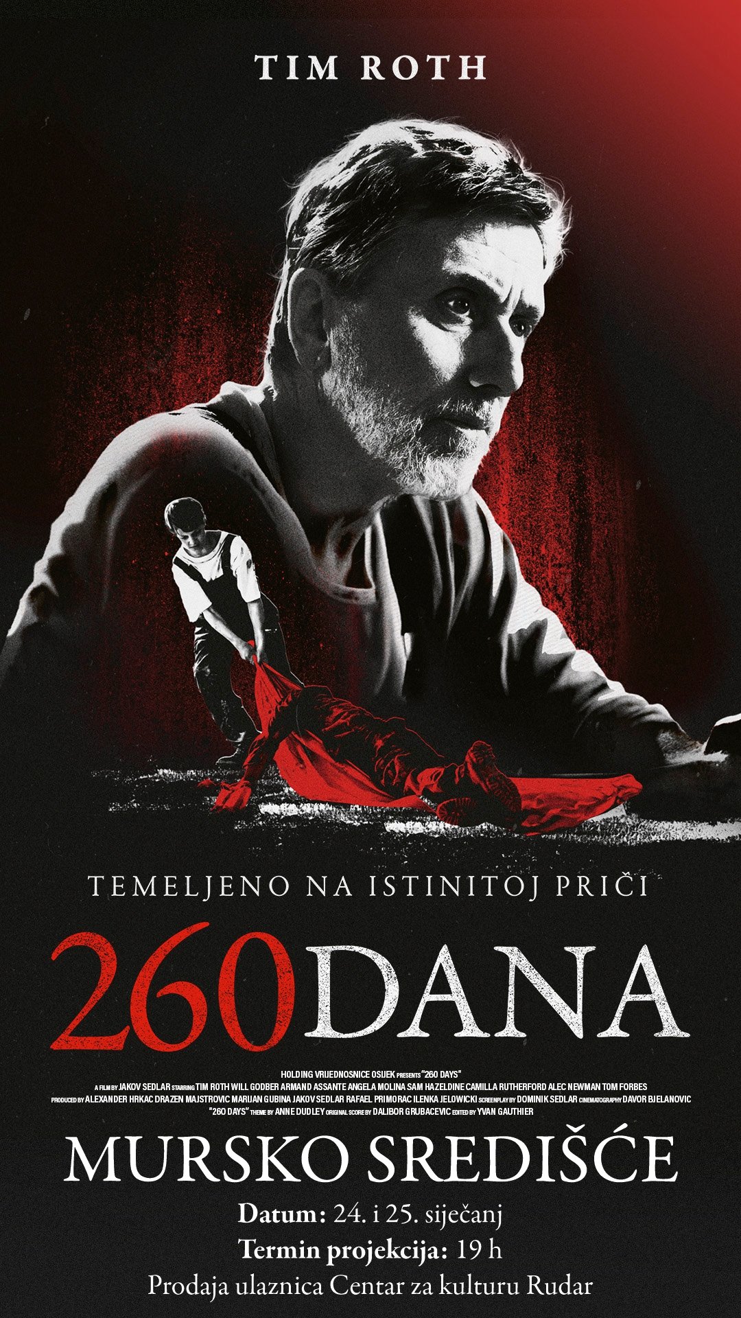 U Murskom Središću krajem siječnja održat će se dvije projekcije filma 260 dana redatelja Jakov Sedlar, koji po prvi put stiže na sjever Hrvatske. Projekcije su zakazane za 24. i 25. siječnja u Centar za kulturu Rudar, s početkom u 19 sati.