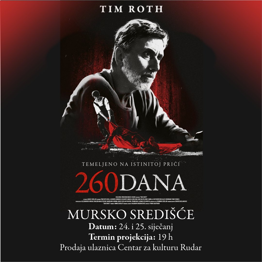 Pozivamo vas na projekcije filma “260 dana” Jakova Sedlara koje će se održati 24. i 25. siječnja u Centru za kulturu Rudar u Murskom Središću, s početkom u 19.00 sati.