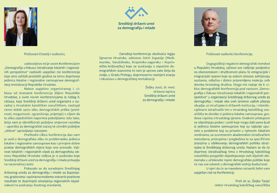 Središnji ured za demografiju i mlade Republike Hrvatske u suradnji s Hrvatskim katoličkim sveučilištem, održat će, u utorak 12. prosinca, u prostoru Poduzetničkog centra Prelog konferenciju pod nazivom: "Demografija u fokusu: Istraživanje lokalnih i regionalnih perspektiva"
