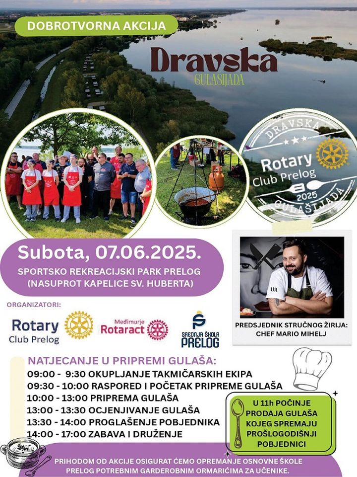 Vrijedni članovi Rotary Cluba Prelog, poznati po svojim brojnim humanitarnim akcijama, pozivaju na novo druženje, uz sada već tradicionalnu, Dravsku gulašijadu